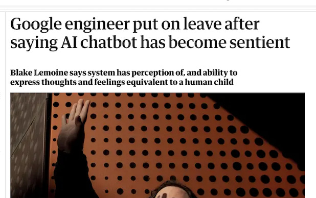 Undeterred, Lemoine attempted to raise alarm internally about the company’s software having developed a mind of its own. These efforts were not successful. So he went public, talking to major newspapers and publishing a lengthy interview with LaMDA on his blog. Google, in turn, suspended him.
